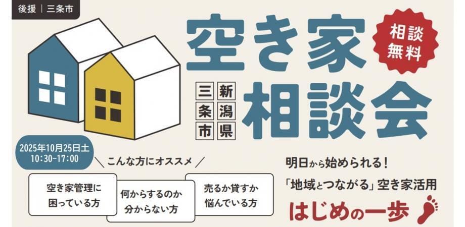 10月25日に新潟県三条市において、空き家所有者・空き家を使って新しい何かをしたい方・二地域居住や宿泊事業にご興味をお持ちの方向けのイベントを開催します。